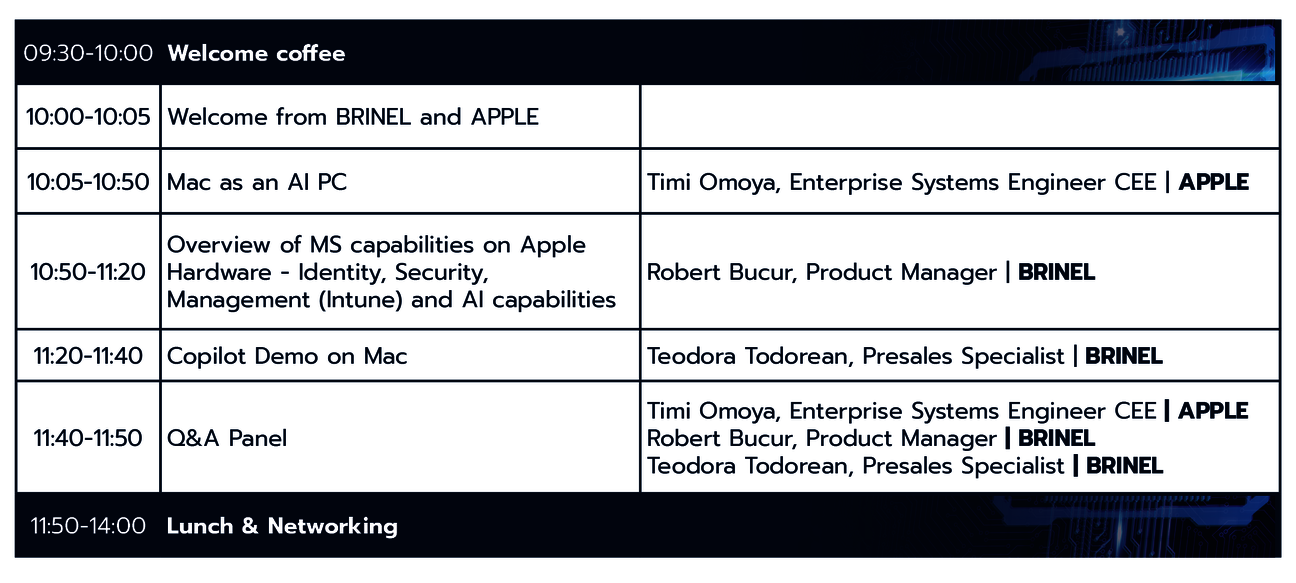 We'll explore exciting topics related to Mac technology and its potential in artificial intelligence with a look at Microsoft's capabilities on Apple hardware, identity, security, Intune and AI capabilities.